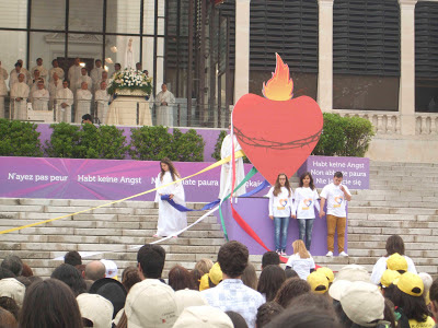 Da Basílica da Santíssima Trindade, terminada a apresentação de João de Carvalho sobre a história das aparições, os grupos organizavam-se em direção ao recinto, tentando encontrar um local bem pertinho do Altar. De muitas memórias fica a mensagem que nos saudava, em letras bem grandes, e que introduzia o significado dado à peregrinação dos nossos pequenitos: Coração de Maria – Refúgio e Caminho. E durante a homilia, da voz de D. António Monteiro Ramos, bispo auxiliar de Braga, ecoavam palavras sobre Maria, o nosso Refúgio e Caminho de Jesus a Deus.